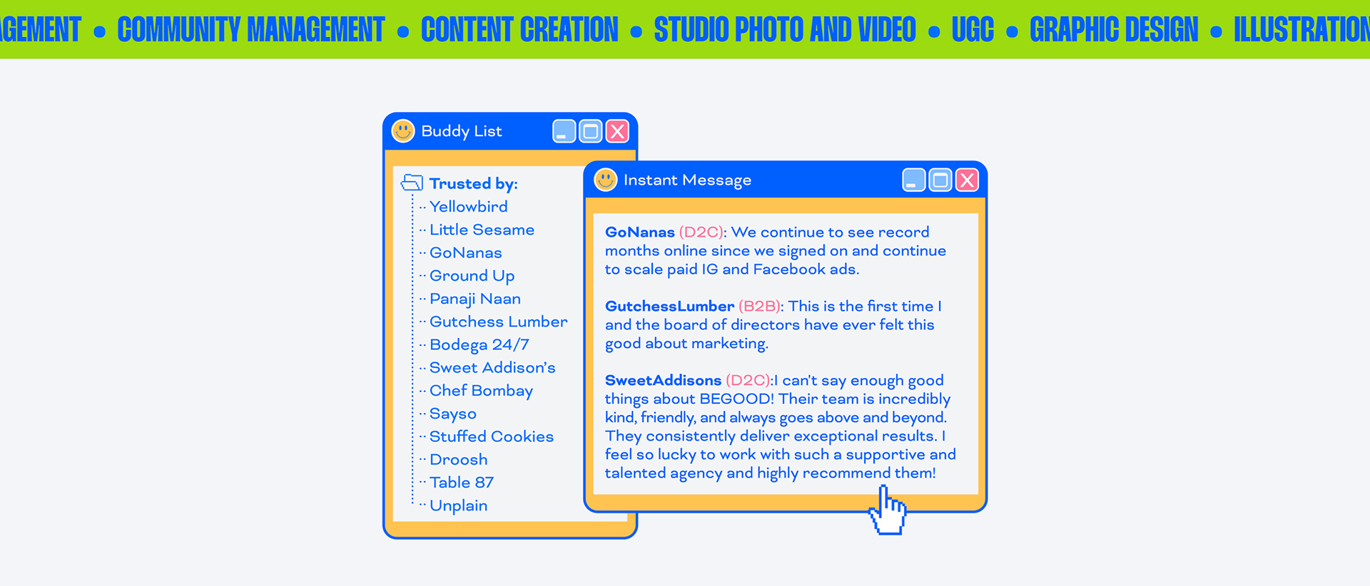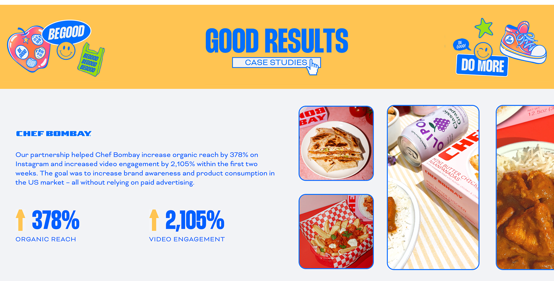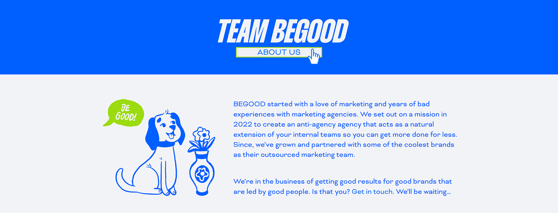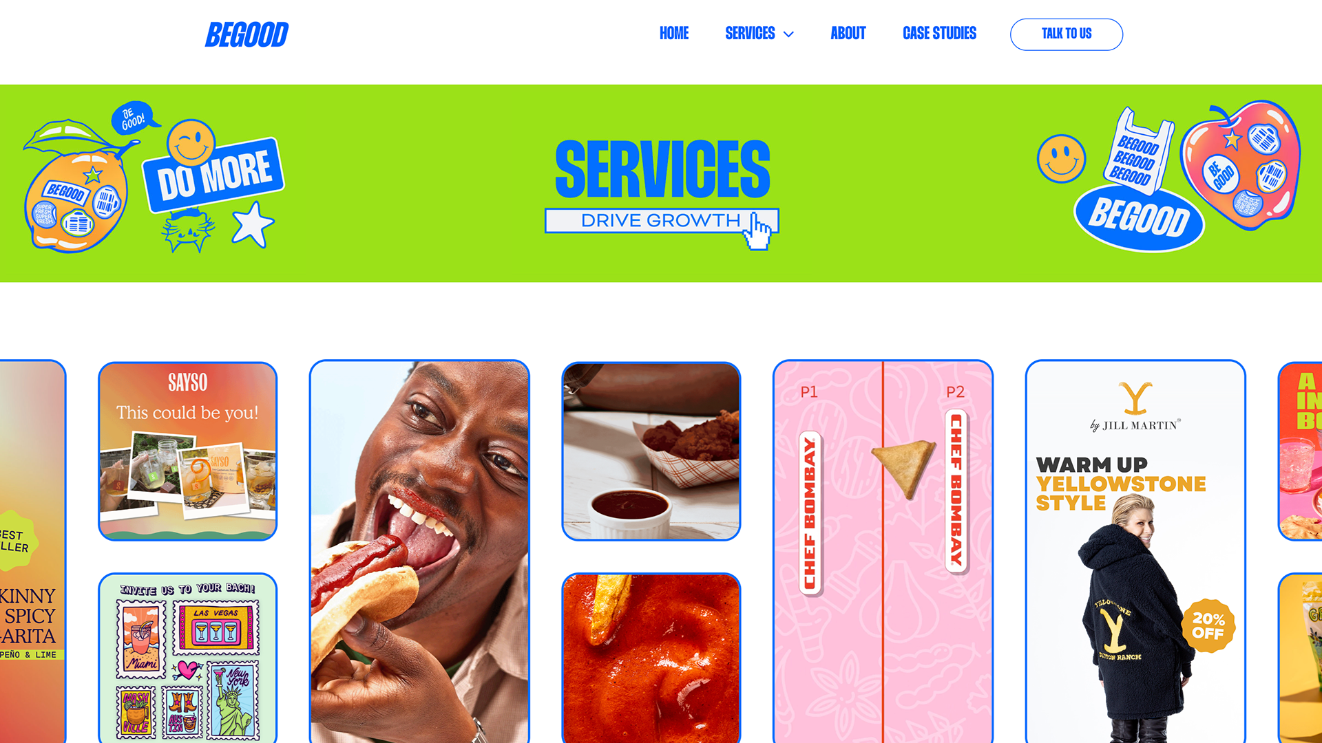 When I started as Lead Designer for BEGOOD Agency, one of my first priorities was completely redesigning our website. The old site just didn’t feel like us—it was clean, but it lacked the fun and creativity we bring to every project. The new design adds color, movement, and personality so visitors instantly get the sense of the bold, energetic work we love to do.