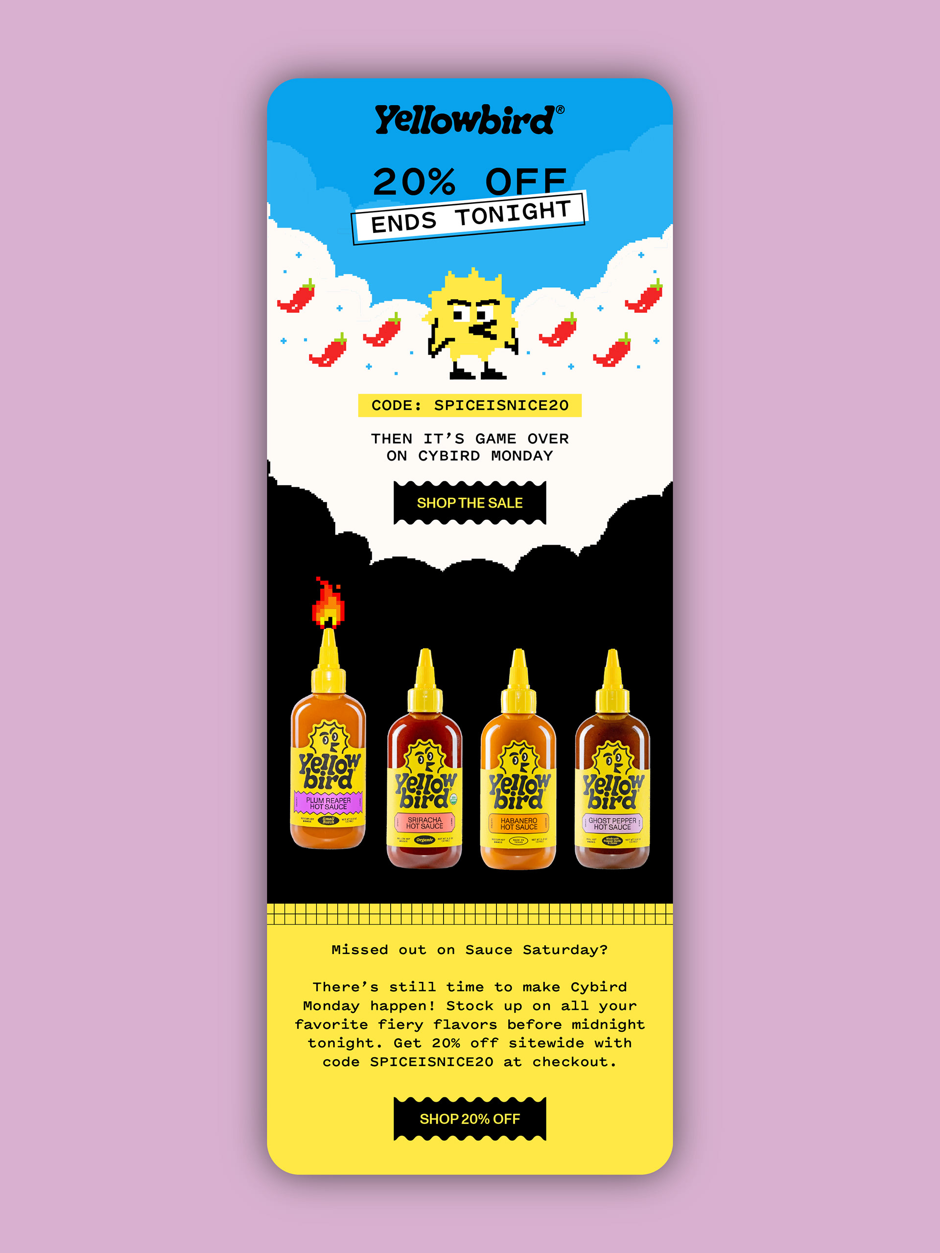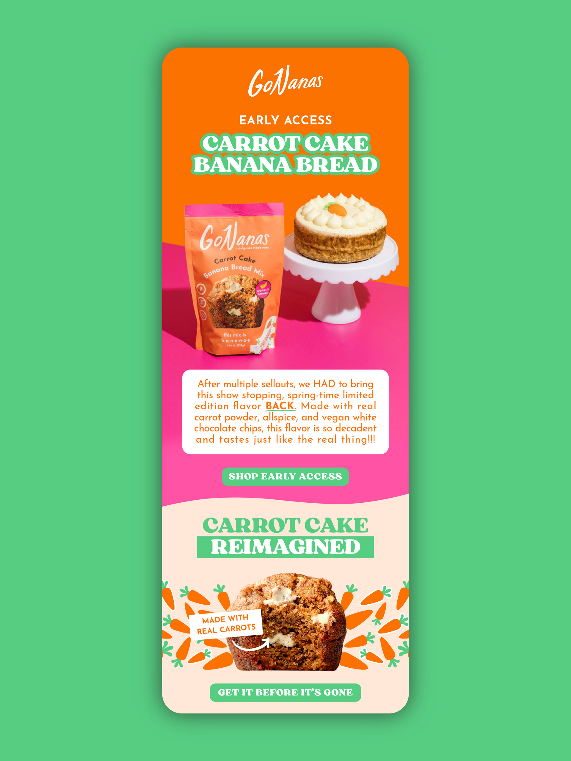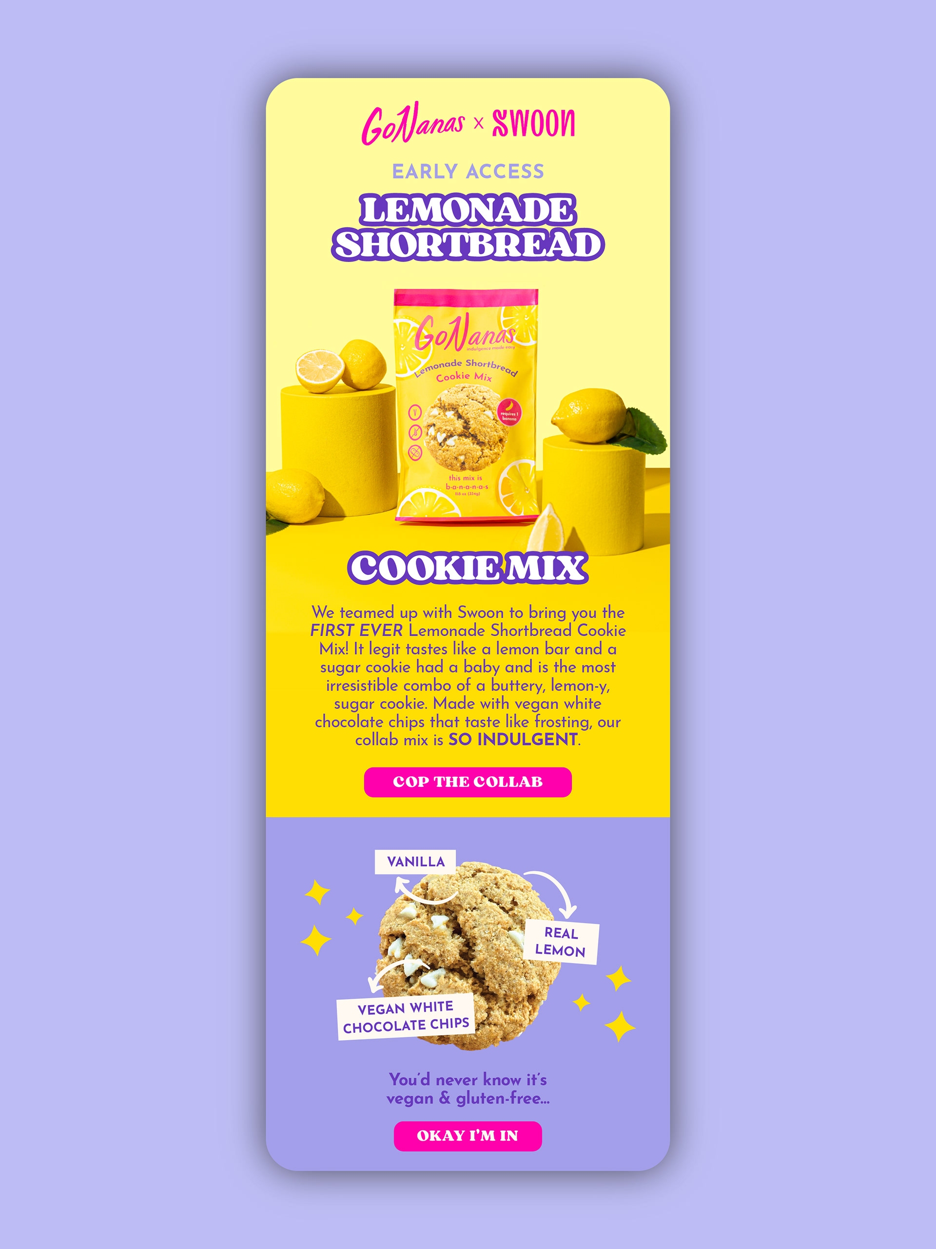 Working as the Lead Designer for BEGOOD Agency, I designed beautiful email campaigns for a rotating roster of clients including Yellowbird, GoNanas, SAYSO, Stuffed Cookies, and more.