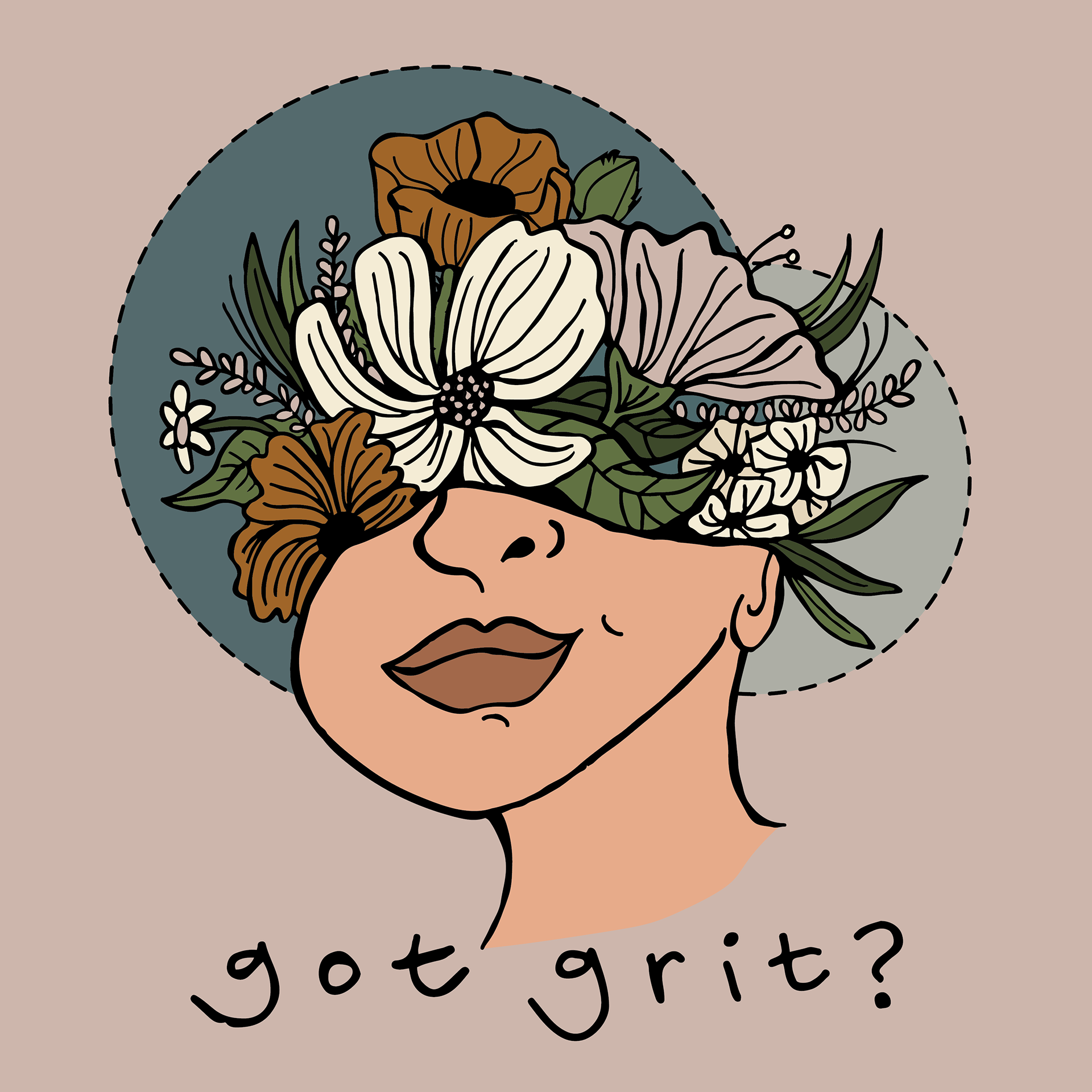 Got Grit? is a new podcast about building a foundation of success. The imagery was inspired by the concept of having a growth mindset, with the flowers coming out of the woman's head representing that.